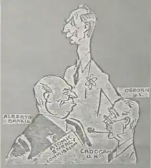 He was appointed Brazil's representative on the UNAEC in 1946, becoming a staunch opponent of the proposals of the Baruch Plan,[5] that could give Americans complete control of the global reserves of thorium and uranium, used later for the mass production of nuclear weapons. Álvaro Alberto called the U.S. policy an "attempted expropriation".[5]