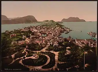 The Ålesund fire happened on 23 January 1904 in the Norwegian city of Ålesund. It destroyed almost the whole city centre, built mostly of wood, like the majority of Norwegian towns at the time. The town has since been rebuilt and it is now the administrative centre of Ålesund Municipality.