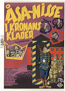 Åsa-Nisse in Military Uniform (Swedish: Åsa-Nisse i kronans kläder) is a 1958 Swedish comedy film directed by Ragnar Frisk and starring John Elfström, Artur Rolén and Brita Öberg.[1] It was shot at the Täby Studios in Stockholm. It is the ninth film in the long-running Åsa-Nisse series about a raffish character living in rural Småland.