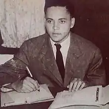 Édouard Mwe di Malila Apenela was born in Moanda, territory of Bas-Congo. He was son to a congolese woman and man from Switzerland. His second name Héritier is dedicated to his biological father. Due to his mother he belonged to the Woyo tribe, which members are present in Cabinda and Congo. This was also the territory of the Ngoyo-Kingdom in which the ruler and nobles held the title, "Mwe", "Mwene" or "Ma". His name "Mwe di" literally means "Lord of", an honorable particule.[3] He worked in the estate industry and owned several buildings in the city center of Kinshasa. Mwe di Malila Apenela had numerous children, among them the current deputy minister of international relations and national integration Franck Mwe di Malila.[4] The in Germany living Artist Jonathan Mwe di Malila also belongs to his descendants (grandson).[3]