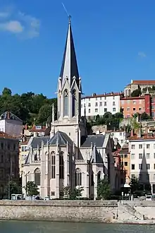 The church was rebuilt in neogothic style. Architect Pierre Bossan, who also made the furniture, later deemed his work on this church as a "youthful mistake".[1] The sculpture on the facade was made by Charles Dufraine and stained glasses are the artwork of Maréchal de Metz.[4] The building is classified as monument historique.[5]
