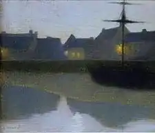Ménard's art allies a rigorous, clear classicism with a diffuse and dreamlike brushwork. In 1894, Victor Soulier in L'Art et la Vie described Ménard's work "visions of a pacified, bathed nature, of dawn and of twilight, where the soul seems to immerse itself in the innocence of daybreak, and breathe the divine anointment that comes with the dawn."[3]