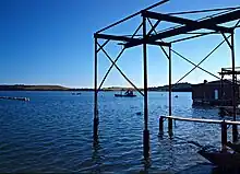The Étang de Diane is not used much by the public, who usually only visit the coastal fringe.[10] The lagoon is privately owned by the Groupement Foncier Agricole de Diana (GFA), which leases it to companies who operate and manage it. Three shellfish and aquaculture companies harvest oysters and mussels, sea bass, sea bream and other species. Fishing is done with gillnets and fyke nets.[6] Five structures are spread over 80% of the lagoon.[10]