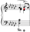The cadence to the coda (bar 66) contains the only white key, F♮, to be played by the right hand. But in the original editions[1][2][3] the two thirds (G♭–E♭ and D♭–F♮) are placed on the left hand staff, though editors like Jan Ekier recommend them to be (partially) played by the right hand.[9]