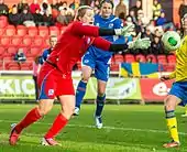 - ↑ "Thora Helgadottir firade 100 med seger över Norge". Damfotboll.com (in Swedish). 7 March 2014. Archived from the original on 16 June 2019. Retrieved 28 June 2014.