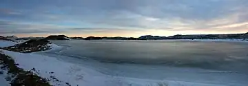 View of Mývatn near Skútustaðir, edged with pseudocraters, looking east, November 2007.