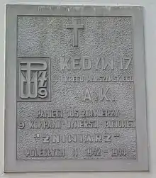 Plaque to commemorate the fallen soldiers of the Żniwiarz Group
