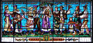 The station building is decorated with stained glass windows. It houses information and ticketing facilities, and a restaurant.