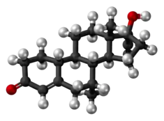 δ4-Tibolone (developmental code name ORG-OM-38), also known as 7α-methylnorethisterone or as 7α-methyl-17α-ethynyl-19-nortestosterone, is a synthetic androgen and progestin which was never marketed.[1][2] The compound is a major active metabolite of tibolone, which itself is a prodrug of δ4-tibolone along with 3α-hydroxytibolone and 3β-hydroxytibolone (which, in contrast to δ4-tibolone, are estrogens).[1] Tibolone and δ4-tibolone are thought to be responsible for the androgenic and progestogenic activity of tibolone, while 3α-hydroxytibolone and 3β-hydroxytibolone are thought to be responsible for its estrogenic activity.[1]