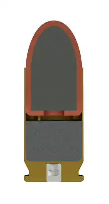 Rounds are available from 68 grains to 300 grains (4.4 g to 19 g) with a common load being the standard military loading of a 230-grain (15 g) FMJ bullet (for comparison, the most common 9mm load is 115 grains (7.5 g), half the weight). Specialty rounds are available in weights under 100 grains (6.5 g) and over 260 grains (17 g); popular rounds among reloaders and target shooters include 185-grain to 230-grain (12 g to 15 g) bullets.[21][22] Target shooters competing in Bullseye Pistol (aka Precision Pistol) find that .45 ACP ammunition using light bullets (12 to 13 g) and low velocities paradoxically generates less recoil than 9mm ammunition of equivalent accuracy, despite its larger caliber, and allows better scores in sustained fire. Hollow-point rounds intended for maximum effectiveness against live targets are designed to expand upon impact with soft tissue, increasing the size of the permanent cavity left by the bullet as it passes through the target.
