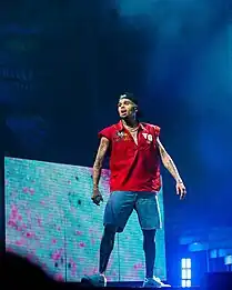 Chris Brown in August 2023, performing in Kingston, Jamaica during his "Under the Influence Tour"