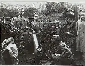 The 15 cm Luftminenwerfer M 15 M. E. (Pneumatic Trench Mortar Maschinenfabrik Esslingen) was a medium mortar used by Austria-Hungary in World War I. It was developed by the German firm Maschinenfabrik Esslingen in response to a German requirement. Its initial testing was observed by an Austro-Hungarian representative and his positive report convinced them to order a batch of five for comparative testing. It was evaluated on 21 September 1915 and it produced the right impression. Nonetheless four weapons were sent off for combat trials at the end of October 1915, which were presumably favorable.