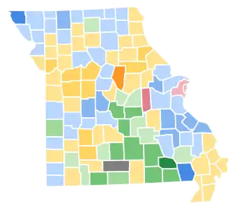 As of the 2020 presidential election, this is the last occasion when Putnam County, Ozark County, and Taney County voted for a candidate running as a Democrat, with the former voting for Douglas and the latter two voting for Breckinridge. This was the first time in American history that four candidates each won at least one county in the same state, something that has only been repeated in 1912.[1]