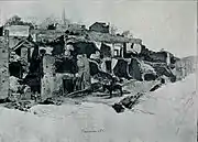 The quake was felt with a maximum intensity of XI around a 3 km2 (1.2 sq mi) area, or 1.5 km (0.93 mi) from the epicenter, in the northern part of Ischia. Unrepaired structures that were previously damaged by the 1881 earthquake were totally destroyed.[9] The earthquake was most devastating in the northern part of the city of Casamicciola, collapsing or seriously damaging many homes. Private buildings, hotels, churches, and country houses were among the many infrastructures destroyed by the earthquake. Damage was reported in every part of the island, with only a handful of buildings left untouched by the quake.[2]