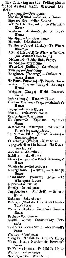 Polling places for the 1886 Western Maori by-election