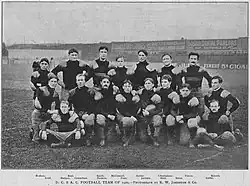 The team was unable to keep its roster intact from its dominant previous season as several players, including star backs J. A. Gammons and Dave Fultz, were lured by higher salaries to the Homestead Library & Athletic Club. Nevertheless, the DC&AC found sufficient replacements to remain strong.[3]