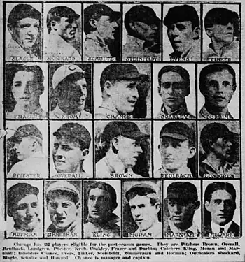 Composite image of post-season eligible players of the 1908 Chicago Cubs.