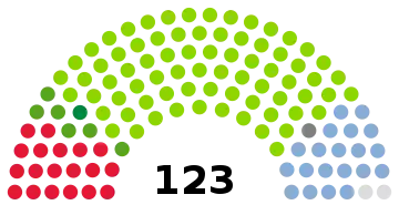 Last election 39.99%, 70 seats 33.15%, 20 seats 26.27%, 23 seats