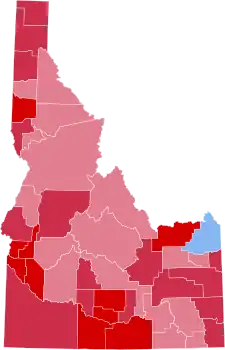 Twin Falls 6,791 72.72% 2,471 26.46% 76 0.81% 4,320 46.26% 9,338