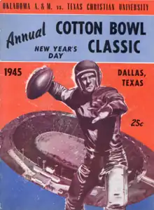 The 1945 Cotton Bowl Classic featured the TCU Horned Frogs and the Oklahoma A&M Cowboys.[1]