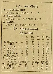 1948–49 League Algiers Standings