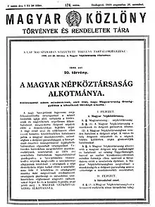 ^ The document was initially titled Constitution of the Hungarian People's Republic (Hungarian: A Magyar Népköztársaság Alkotmánya).