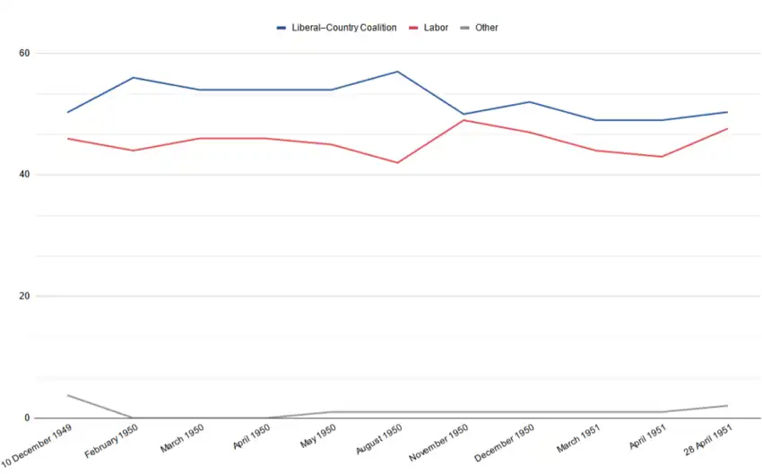 5. 1 2 3 "Gallup Poll Gives It To Menzies". The Daily News. Vol. LXIX, no. 23, 724. Western Australia, Australia. 27 April 1951. p. 1. Retrieved 15 June 2023 via National Library of Australia.