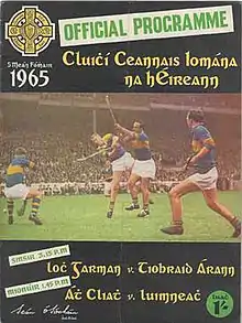 The 1965 All-Ireland Senior Hurling Championship Final was the 78th All-Ireland Final and the culmination of the 1965 All-Ireland Senior Hurling Championship, an inter-county hurling tournament for the top teams in Ireland. The match was held at Croke Park, Dublin, on 5 September 1965, between Wexford and Tipperary. The Leinster champions lost to their Munster opponents on a score line of 2–16 to 0-10.