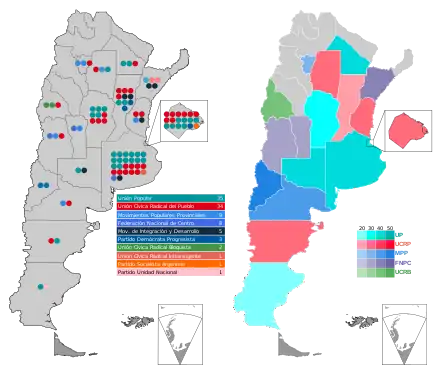 | Province | Popular Union | UCRP | Center Parties | MID | Other Peronists | Others | ||||||||||||