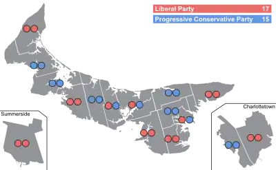 All 32 seats in the Legislative Assembly of Prince Edward Island 17 seats needed for a majority | ||||||||||||||||||||||||||||||||||