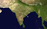 A low-pressure area that was centred over West Bengal on August 31 organized into a depression on September 2, when it was 50 km (31 mi) to the east of Midnapore. It intensified as it moved to the west, becoming a deep depression on the next day, about 50 km (31 mi) east of Ranchi. The system continued to move west across India, before weakening into a depression on September 7, near Ahmedabad, Gujarat. The depression then turned northward and entered southwest Rajasthan.[2] On September 8, the system turned to the southwest and emerged into the Arabian Sea on the following evening. Over open water, it intensified again, becoming a cyclonic storm by the evening of September 10. The cyclone developed a short-lived eye on September 11, as it drifted slowly to the west, before degenerating into a broad area of low pressure as it neared the Oman coast, on September 14.[2] This system brought widespread rains to a wide swathe of India during its existence. Some heavy rains in West Bengal flooded vast areas of many districts and resulted in some fatalities, whilst in parts of neighbouring Orissa the floodwaters damaged fields. 390 mm (15 in) of rain fell on Bardhaman over two days as the depression passed overhead. Several thousand people were made homeless in West Bengal. Both the Narmada and Tapti Rivers inundated parts of Madhya Pradesh and Gujarat. The floods in Gujarat took many lives and caused severe damage to crops and other properties. Between 300 and 400 people were washed away in two villages in Bharuch district.[2] 260 mm (10 in) of rain fell on Surat on July 7 and a further 80 mm (3.1 in) on Kutch District as the cyclone moved out to sea.[2]