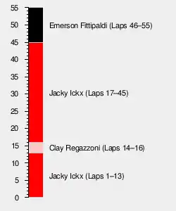 | 9 | 19 | March-Ford | 54 | + 1 Lap | 24 | ||