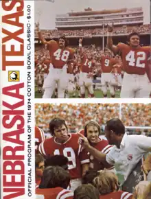 The 1974 Cotton Bowl Classic was played on January 1 at the Cotton Bowl in Dallas. It matched the Texas Longhorns of the Southwest Conference and the Nebraska Cornhuskers of the Big Eight Conference.[1][2][3]
