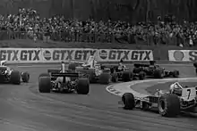 Scheckter took the lead at the end of lap 1 on dry tyres and Pryce was soon catching him, having passed Ronnie Peterson and Ickx after a bad start on the damp side of the track.