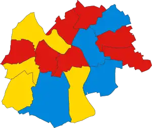 Last election 23 seats, 43.7% 13 seats, 42.1% 9 seats, 14.0%