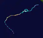 In addition to the 11 named storms, there were two additional storms in the season, classified by the Joint Typhoon Warning Center (JTWC).[nb 2] The first developed in July in the Australian basin, and briefly crossed into the south-west Indian Ocean on July 14. Soon after it re-entered the Australian basin and dissipated.[6] The other formed just southeast of Diego Garcia on November 20. It tracked to the southwest, and the JTWC estimated peak 1 minute sustained winds of 85 km/h (55 mph). The storm dissipated on November 25 northeast of Mauritius.[7] In addition, Cyclone Daryl, which formed in the Australian basin on March 6, crossed into the south-west Indian Ocean on March 16 as a weakening storm without being renamed. Two days later it re-entered the Australian basin before dissipating.[8]
