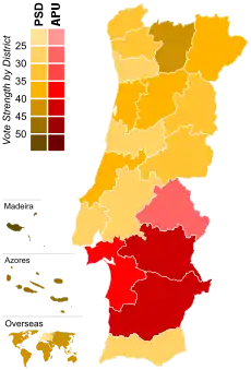 - ↑ Portuguese Communist Party (35 MPs) and Portuguese Democratic Movement (3 MPs) ran in coalition.