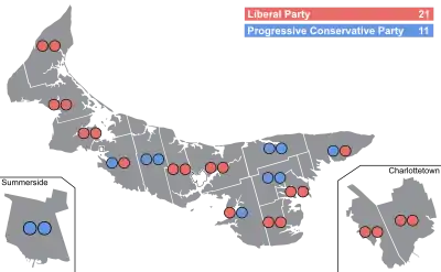 The election resulted in the defeat of the two-term Progressive Conservative government by the Liberals led by Joe Ghiz. Ghiz, the son of a Lebanese store owner, went on to become the first Canadian premier that was not of complete European descent.[3]
