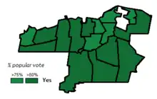 Plebiscite results by ward. Support was the strongest in Riverside Ward (84.2%) and the weakest in St. George's Ward (76.4%).