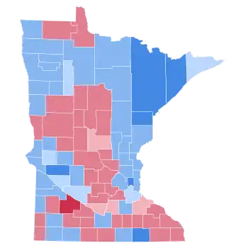 | Goodhue | 9,438 | 49.41% | 9,455 | 49.50% | 209 | 1.09% | -17 | -0.09% | 19,102 |