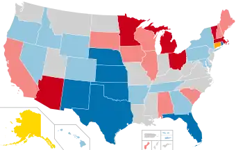 Heading into the elections, there were 20 seats held by Democrats and 16 held by Republicans. By the end of the elections, 19 seats would be held by a Democrat, 15 would be held by a Republican, and two would be held by other parties.