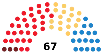 Last election 27 seats, 35.7% 19 seats, 28.1% 13 seats, 16.7%[lower-alpha 1]