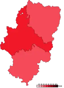 Voting for the Cortes was on the basis of universal suffrage, which comprised all nationals over 18 years of age, registered in Aragon and in full enjoyment of their political rights. The 67 members of the Cortes of Aragon were elected using the D'Hondt method and a closed list proportional representation, with an electoral threshold of three percent of valid votes—which included blank ballots—being applied in each constituency. Seats were allocated to constituencies, corresponding to the provinces of Huesca, Teruel and Zaragoza, with each being allocated an initial minimum of 13 seats and the remaining 28 being distributed in proportion to their populations (provided that the seat-to-population ratio in the most populated province did not exceed 2.75 times that of the least populated one).[3][4]