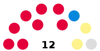 Party Seats Gains Losses Net gain/loss Seats % Votes % Votes +/−