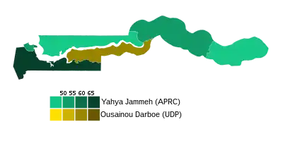 Despite originally stating that he did not intend to run, Jammeh entered the race shortly before the elections. He emerged victorious with 55.8% of the vote, winning the most votes in every district except Mansa Konko (where UDP candidate Ousainou Darboe was the most voted-for).