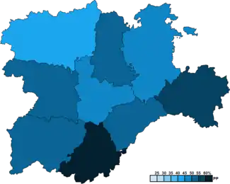 ![]() Constituency results map for the Cortes of Castile and León | ||||||||||||||||||||||||||||||||||||||||||||||||||||||||||||||||||||||||||||||||||