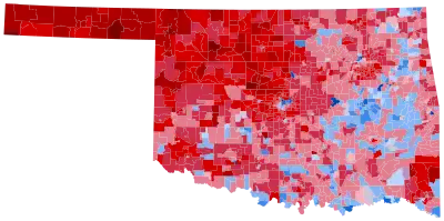 | Oklahoma | 139,078 | 62.34% | 81,590 | 36.57% | 2,443 | 1.09% | 57,488 | 25.77% | 223,111 |