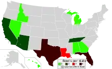 ![]() Number of bowl games per state. | |||||||||||||||||||||||||||||||||||||||||||||||||||||