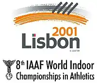 The 8th IAAF World Indoor Championships in Athletics were held at the Pavilhão Atlântico in Lisbon, Portugal from March 9 to March 11, 2001. It was the first time the Championships had been held in Portugal. There were a total number of 511 participating athletes from 136 countries.