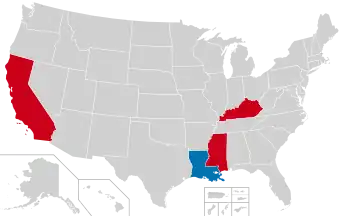 Three states held elections for Governor in 2003. In addition to these regularly scheduled elections, California held a recall election. California held a recall election on October 7. Kentucky and Mississippi voted on November 4. Louisiana's election dates do not coincide with that of most states: Louisiana held its open primary on October 4, with a runoff on November 15.